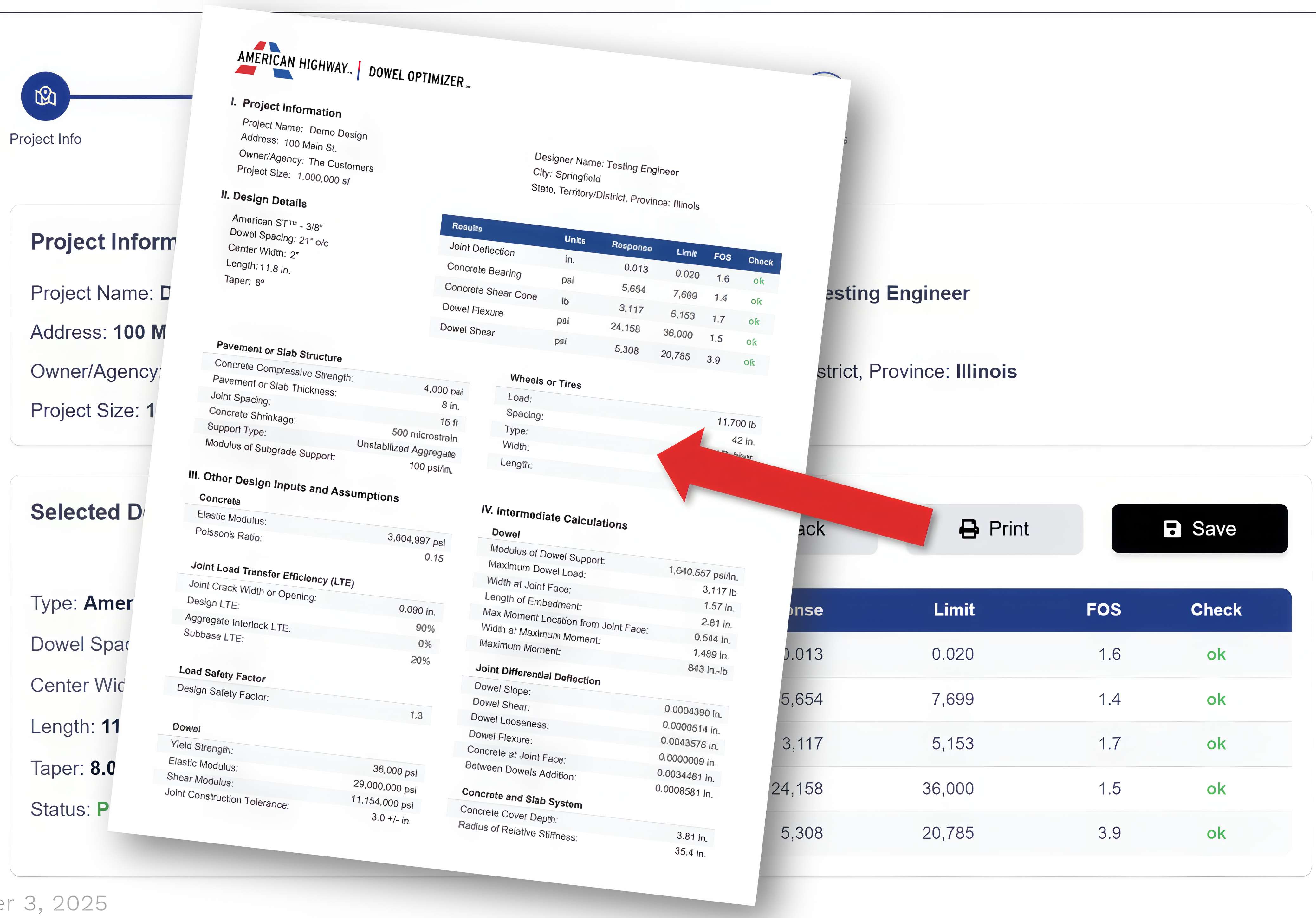 The Dowel Optimizer™ uses an advanced range of inputs to accurately assess the performance capabilities of all dowel geometries and materials based on specific project demands and equipment. Designers can customize specific dowels for a project and compare multiple dowel types, side-by-side, in highway, paving and industrial commercial designs.